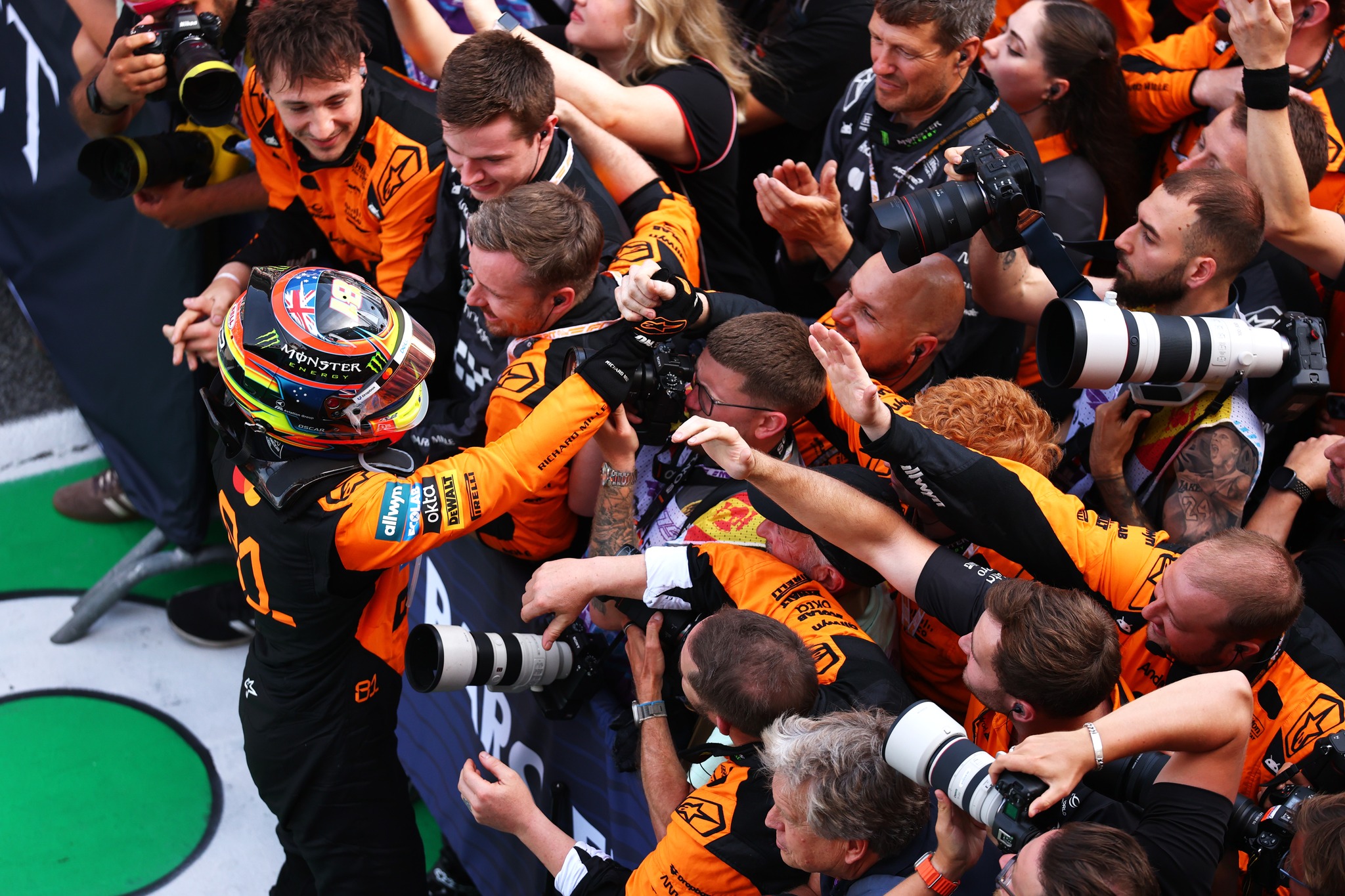 En el resto de la carrera, otra vez la jornada fue dominada por McLaren, que metió un 1-2 con Piastri y Norris. Tercero llegó Charles Leclerc con Ferrari, cuarto George Russell con Mercedes y quinto Nico Hulkenberg con el sorprendente Kick Sauber.