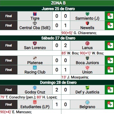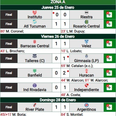 Los resultados de la primera fecha fueron los siguientes: